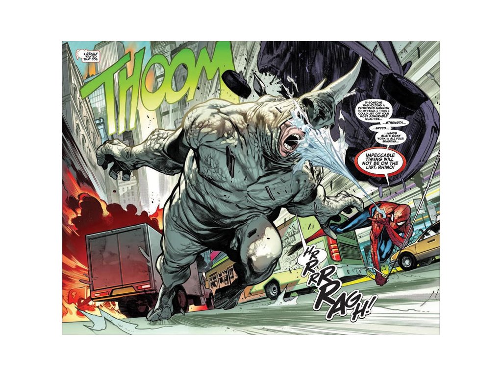 Peter Parker je, šokujúco, bez práce a hľadá si stále zamestnanie – jeho pátranie však preruší vyčíňajúci Rhino, ktorý je len špičkou Sinister ľadovca! Ktorý veľký Spider-záporák pracuje v zákulisí a vyzbrojuje ostatných nepriateľov, vrátane jedného, ktorého sme nevideli takmer sedem rokov?! A čo má vlastne za lubom Norman Osborn, tentoraz bez vplyvu Goblina?