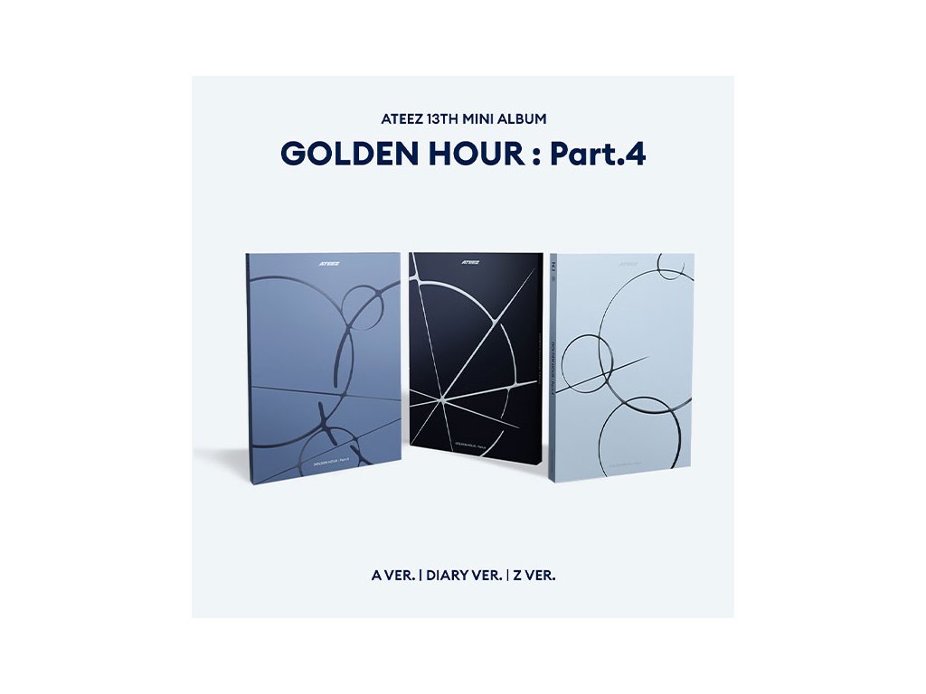 13. mini album k-pop skupiny ATEEZ s názvom Golden Hour: Part.4. Okrem 5 nových songov ťa čakajú fotokarty, fotokniha, samolepka a šalšie bonusy.