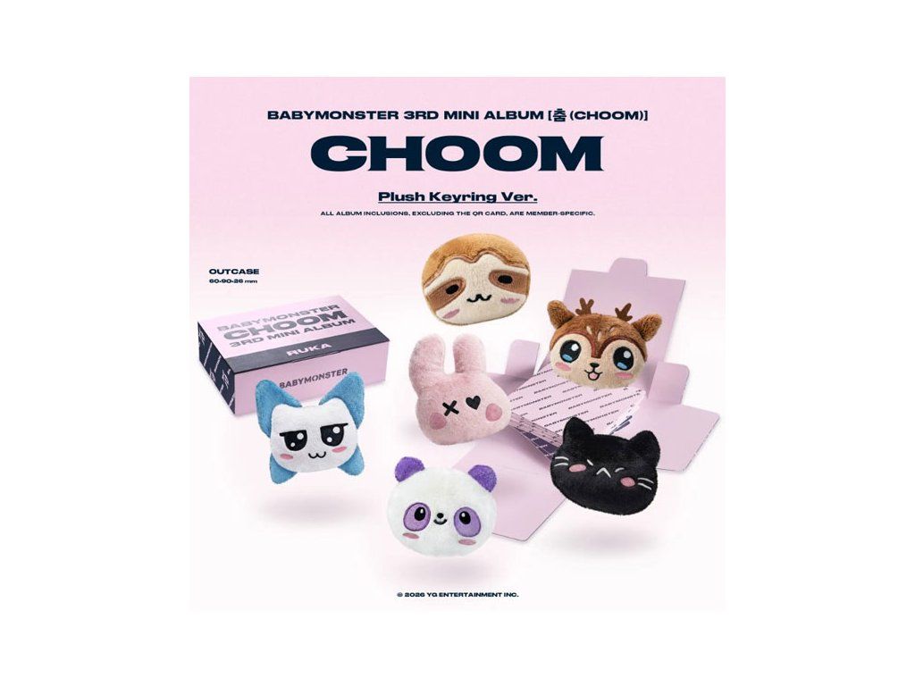 BABYMONSTER sú späť! Zaži explóziu hip-hopu a tanečných k-pop beatov v albume CHOOM. Obsahuje exkluzívne fotokarty a 1 zo 6 plyšových kľúčeniek!