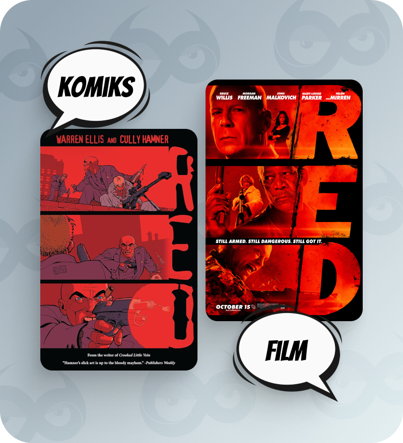 Ľudia dobre poznajú akčné komédie RED (2010) a RED 2 (2013), v ktorých hviezdil Bruce Willis. Warren Ellis a Cull Hamner vytvorili ešte skôr rovnomenné komiksy, na základe ktorých vznikol aj film.