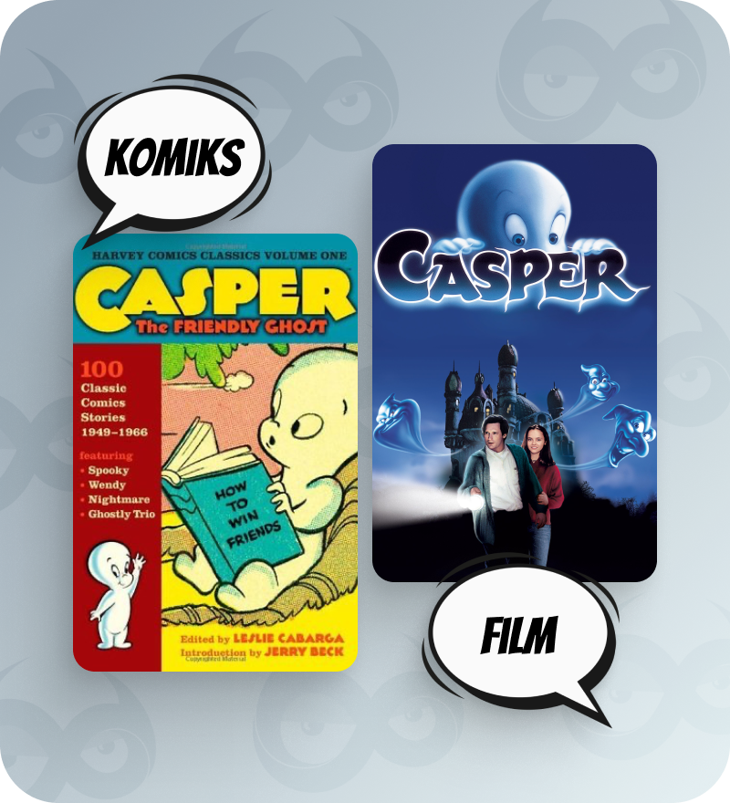 Možno ťa to prekvapí, ale základom obľúbenej rozprávky Casper bol komiks. Komiks vyšiel už v roku 1939. Ak ti meno Casper nič nehovorí, dovoľ nám, aby sme ti ho predstavili. Casper je malý duch, ktorý sa snaží nájsť si priateľov, no každý, ktor ho stretne, sa ho zľakne. Nesnaží sa ľudí vystrašiť, práve naopak, má dobré úmysly a chce mať iba kamarátov. Je to jednoduchý detský príbeh.