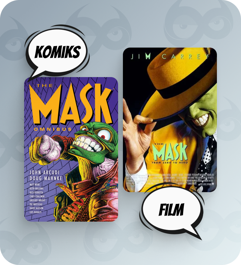 Komiks a film The Mask sa veľmi líšia. Film je voľnou adaptáciou, ktorá všetko zlé a kruté z komiksu vynechala a maske dala novú pozitívnu úlohu. Z príbehu sa tak stala nezabudnuteľná komédia.