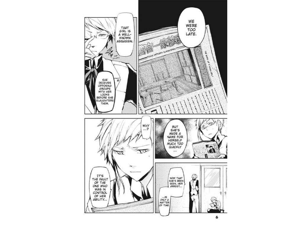 Atsushi has managed to rescue Kyouka Izumi, who's been working as a Port Mafia assassin against her will. But the deadly Akutagawa hasn't given up yet! Atsushi's not the only one with a dangerous foe, however. Mafia member Chuuya Nakahara makes his appearance, and his grudge against Dazai is nothing to sniff at!