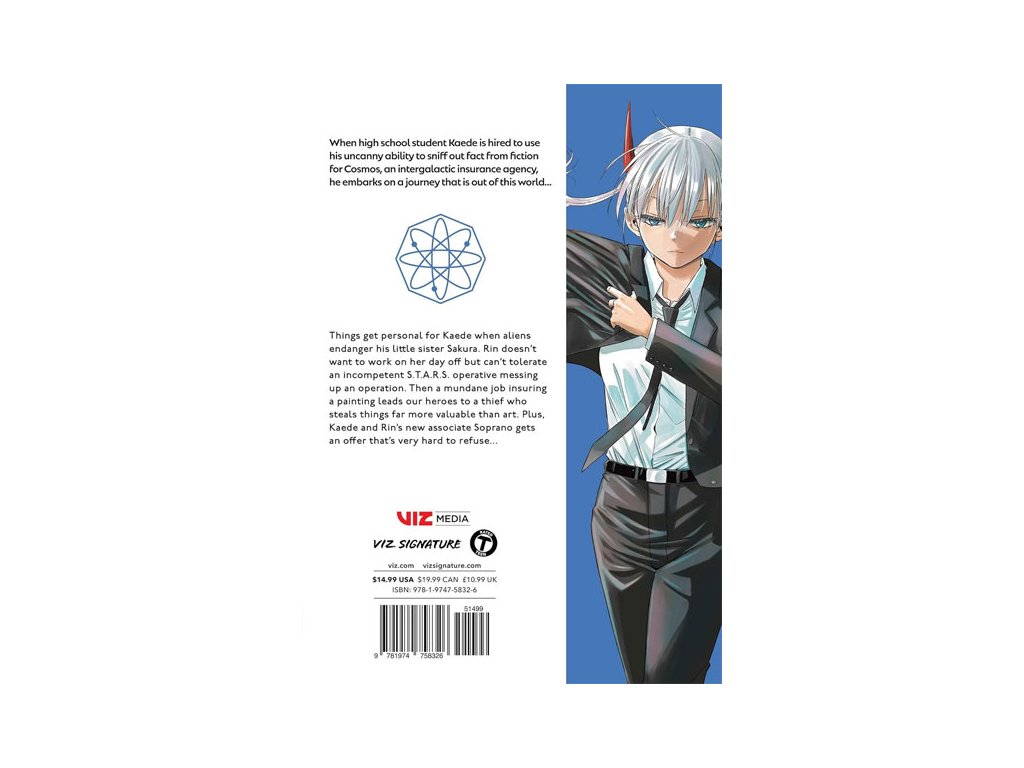 Sleduj Kaedeho v medzigalaktickej poisťovni, kde mimozemšťania a krádeže vecí, ktoré sú vzácnejšie než umenie! Ponor sa do 3. dielu sci-fi mangy Cosmos!