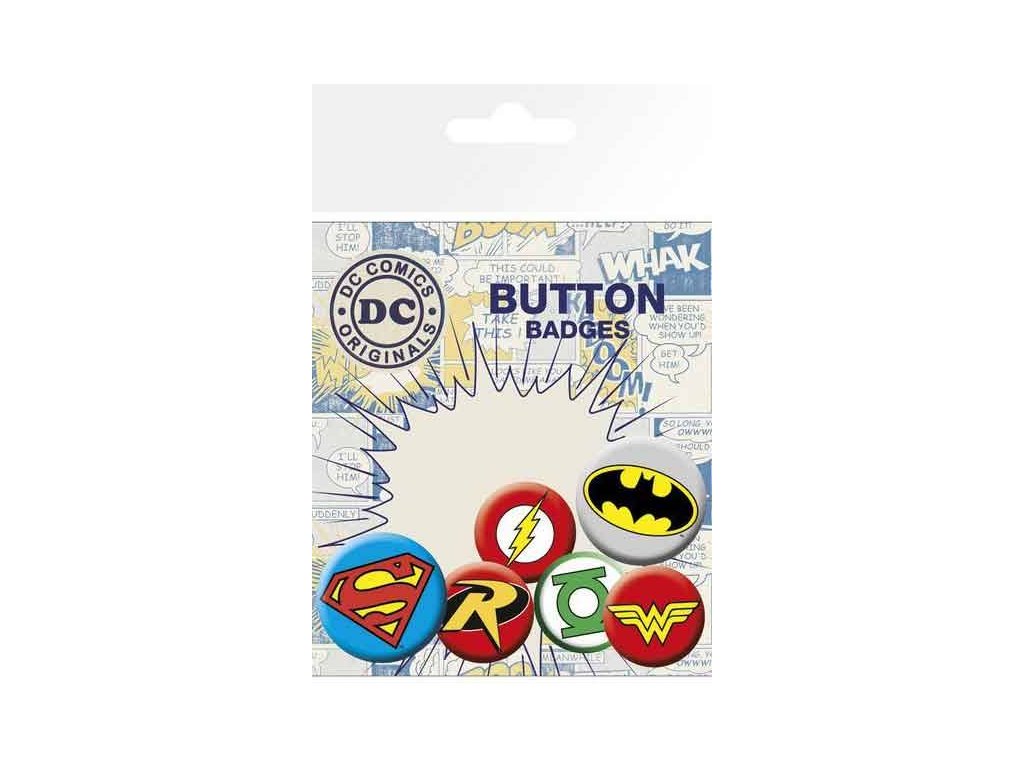 Oficiálne licencovaná kolekcia odznakov s motívmi obľúbených komiksových hrdinov DC Comics. Sada obsahuje 5 rôznych druhov z toho dva veľké v priemere cca 3,8 cm a 4 ks v štandardnej veľkosti (priemer cca 2,5 cm).