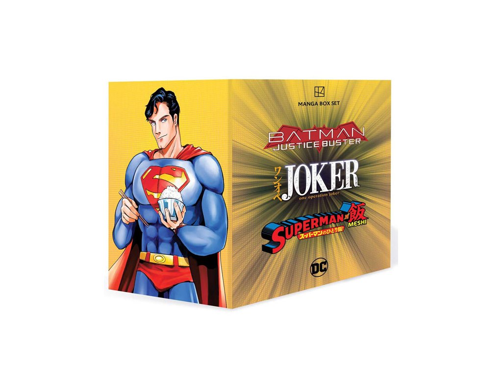 SUPERMAN VS. MESHI, VOL. 1 – 3: Byť Supermanom si vyžaduje veľa energie! Preto sa v Superman vs. Meshi Superman každý deň zastaví v Japonsku na rýchly obed, aby vyskúšal novú sieť reštaurácií. Či už je to sýta miska kari, alebo sushi na pohyblivom páse, Muž z Ocele si rád dopraje lahôdky, ktoré táto krajina ponúka. Z času na čas si dokonca zájde na jedlo s ostatnými členmi Justice League v nádeji, že im ukáže neuveriteľný kulinársky zážitok.
