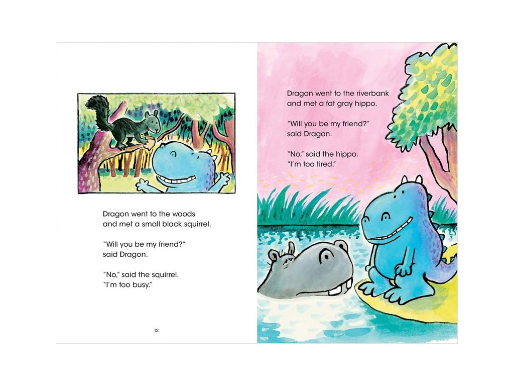 - A Friend for Dragon: Lonely Dragon has made a friend and he loves spending time with his new buddy! He enjoys telling scary stories, cracking funny jokes, and fixing a midnight snack for them to share. But when his friend appears to be ill, Dragon demonstrates what it means to be a true friend.