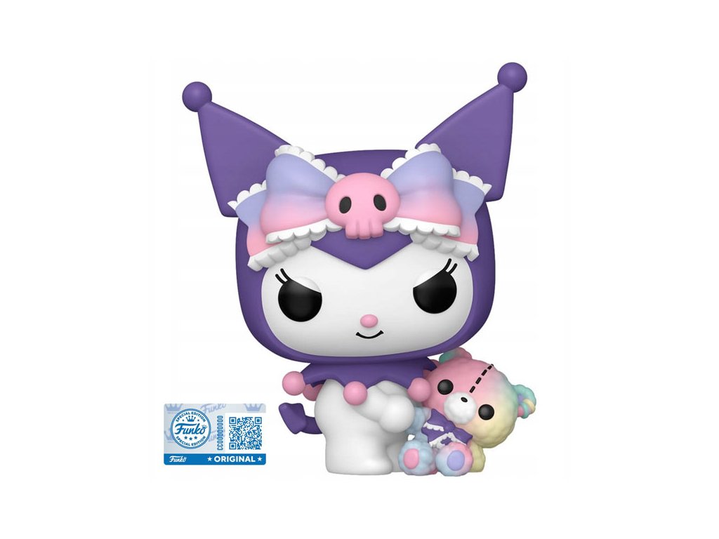 Aj tá najväčšia drsniačka zo sveta Sanrio má svoju jemnú stránku. Táto Special Edition figúrka zachytáva Kuromi v jej ikonickom punkovom štýle, ako v náručí zviera rozkošného plyšového medvedíka.