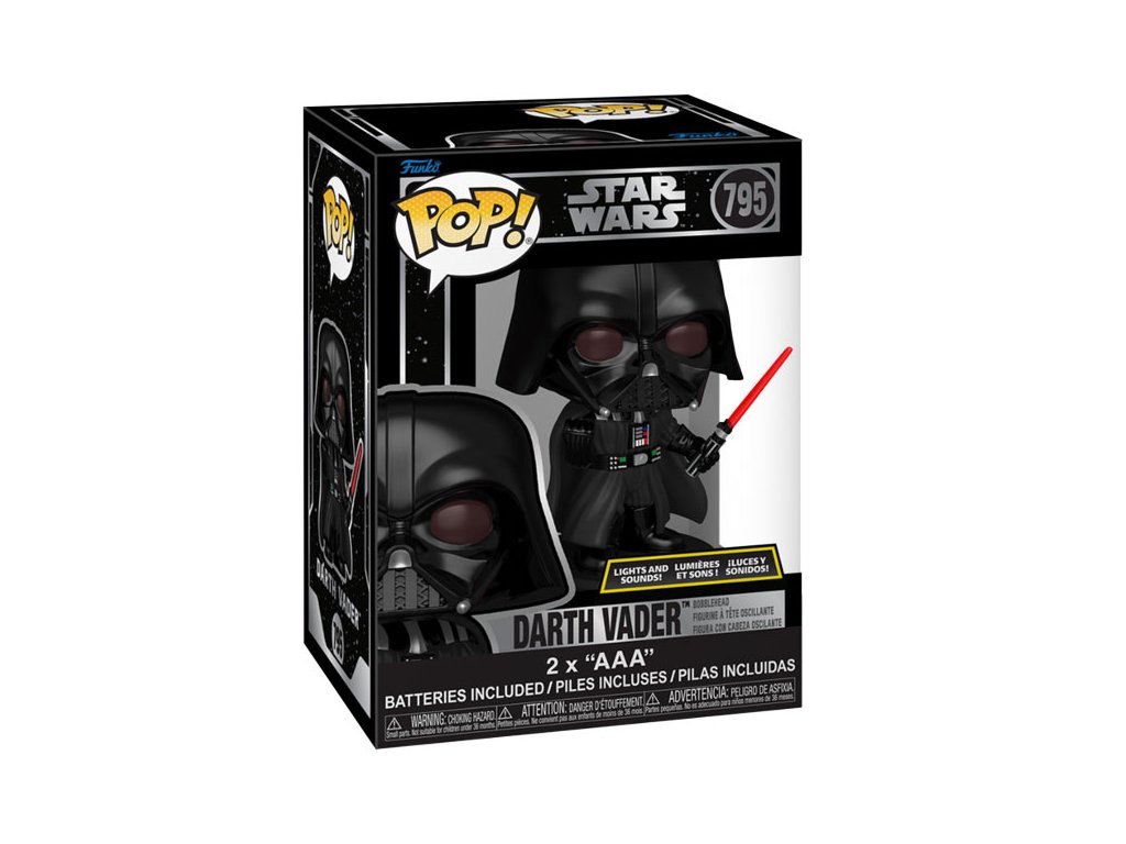 S touto exkluzívnou figúrkou Funko POP! Darth Vader zažiješ príchod temnoty ako nikdy predtým. Táto figúrka je vybavená špeciálnymi funkciami Svetla a Zvuku, vďaka ktorým Vader ožíva!