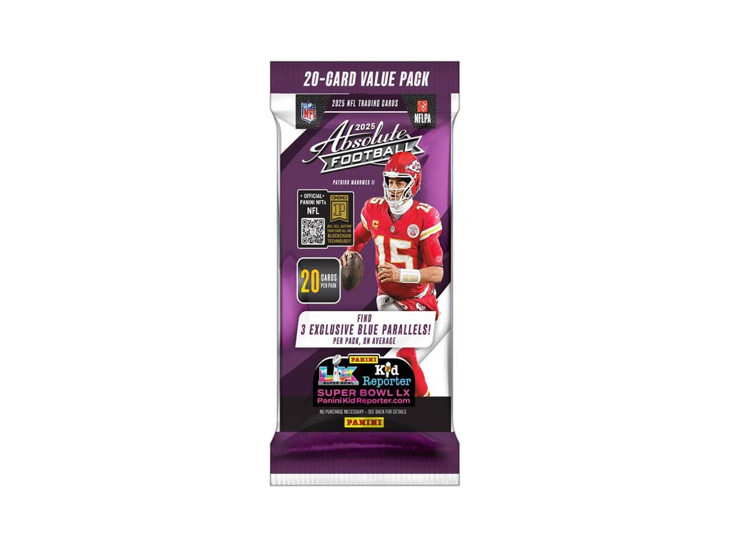 Balíček zberateľských kariet amerického futbalu Absolute Football 2025 od Panini. Obsahuje 20 kariet. Objav hviezdy NFL a doplň si zbierku o nové kúsky!