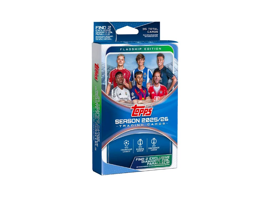 Balíček zberateľských futbalových kariet UEFA Club Competitions Flagship Edition 2025/2026 od Topps. Obsahuje až 35 kariet. Nájdi vzácne kúsky!