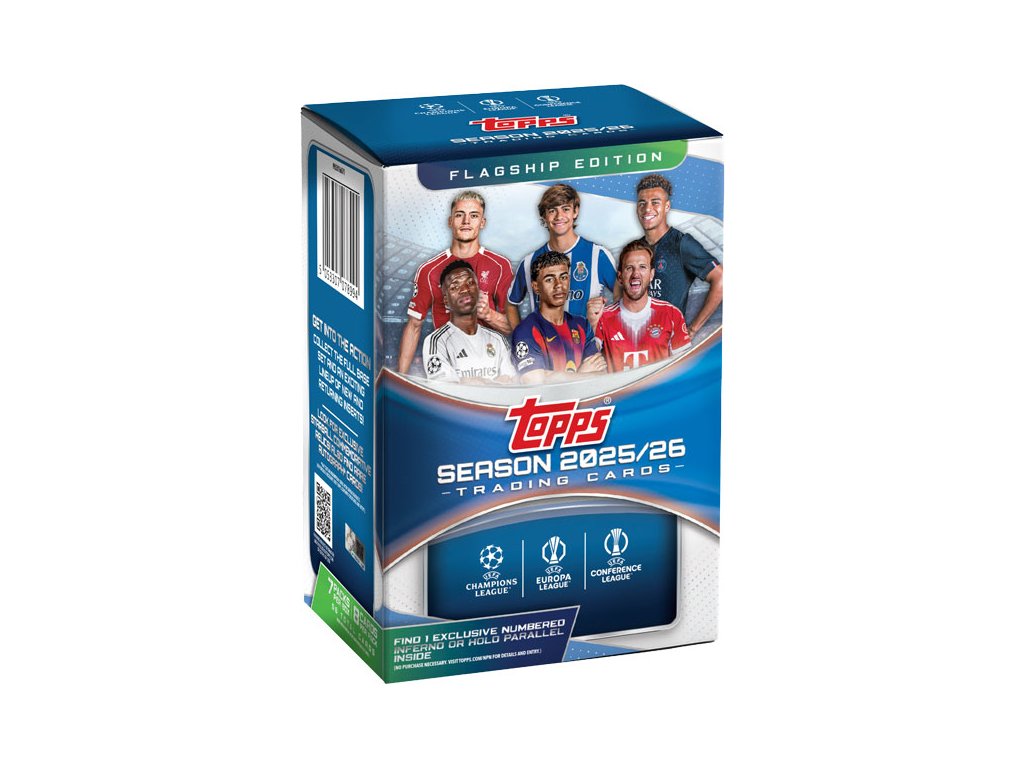 Zberateľský box s futbalovými kartami od Topps zo série UEFA Club Competitions Flagship 2025/2026. Obsahuje 7 balíčkov po 8 kariet. Doplnil si zbierku!