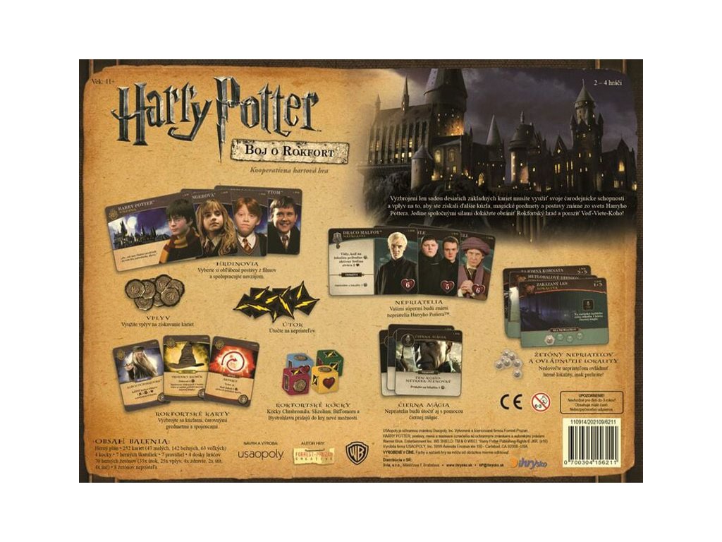 Kooperatívna spoločenská hra pre deti aj dospelých z obľúbeného sveta Harry Potter. Vhodné pre 2 a viac hráčov. Spolupracujte a obráňte Rokfort pred nepriateľmi!