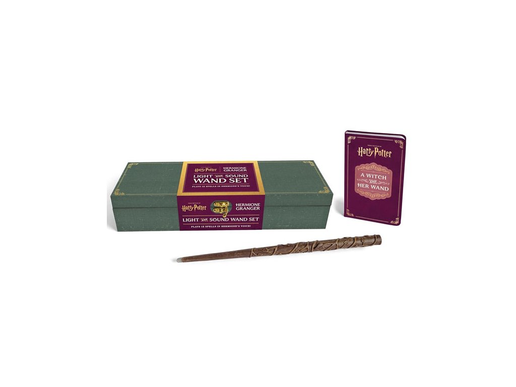 Jedinečná, úžasná súprava s prútikom Hermiony Grangerovej so svetlom, diaľkovo ovládaným zvukom, knihou a krabičkou na pamiatku. Obsahuje zvukové nahrávky Hermiony Grangerovej (nahovorené Emmou Watson) z filmov o Harrym Potterovi!