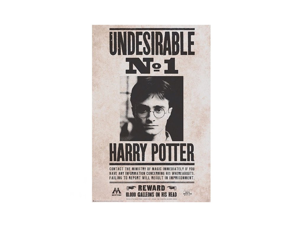 Ministerstvo mágie prehovorilo a hľadá sa „Nežiaduceho číslo jedna“! Tento ikonický plagát je vernou kópiou vyhlášky, ktorá zaplavila ulice čarodejníckeho sveta počas nadvlády Lorda Voldemorta. Ak si aj ty na strane Harryho a tajne fandíš Dumbledorovej armáde, tento kúsok histórie jednoducho musíš mať na stene.