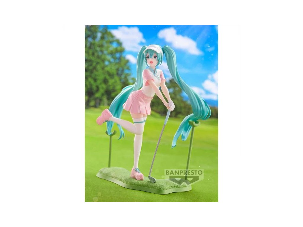 Zabudni na pódium a reflektory! Táto precízne spracovaná figúrka od Banpresto prináša Miku v štýlovom golfovom oblečení, pripravenú na relaxačný deň na green-e. Každý detail, od jej ikonických tyrkysových vlasov až po miniatúrne golfové doplnky, je zhotovený s láskou a dôrazom na autentickosť.