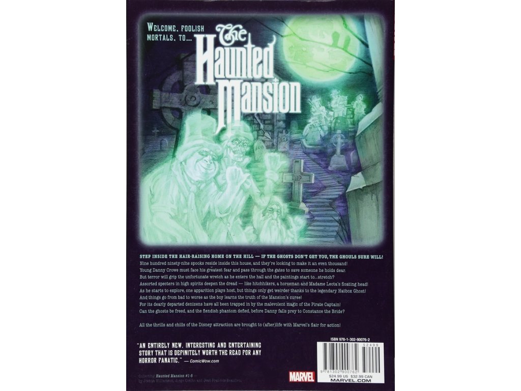 Welcome, foolish mortals, to the Haunted Mansion - enter if you dare! You might think that no one lives in this elegant house on the hill...but then where's that creepy organ music coming from? Are its iron gates meant to keep people out...or keep something in? Get ready to meet the 999 spooks of the Haunted Mansion. But be warned, they're looking for the 1000th! Legendary ghouls like Madame Leota, the Hatbox ghost, Constance the Bride and the Hitchhiking Ghosts lie in wait and could appear at any moment. But poor Danny is trapped inside and just wants to escape the foreboding abode - is there anyone he can trust to help him? Marvel brings the chilling fan-favorite Haunted Mansion attraction to (after) life in the latest spine-tingling Disney Kingdoms adventure!
