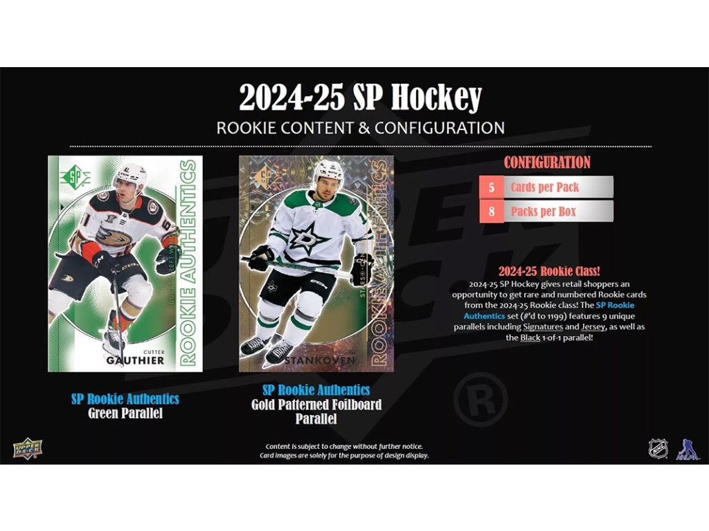 Zozbieraj základný set o 140 kartách, ktorý sa skladá zo 100 kariet hviezdnych veteránov a 40 limitovaných SP Rookie Authentics kariet, kde nájdeš len tých najlepších nováčikov sezóny 2024-25!