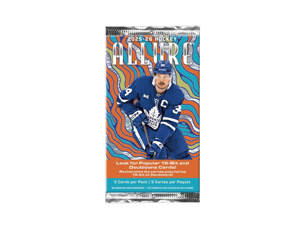 Balíček zberateľských hokejových kariet Allure Hockey 2025/2026 od Upper Deck. Balíček obsahuje 5 kariet. Nájdi špeciálne paralelky a inzerty svetových hviezd!