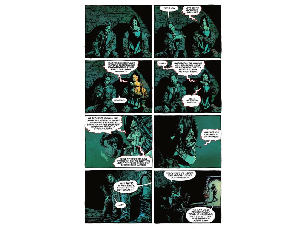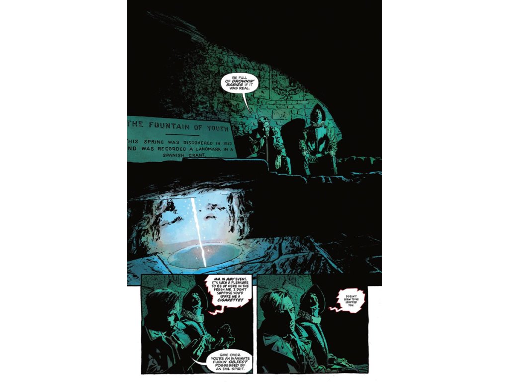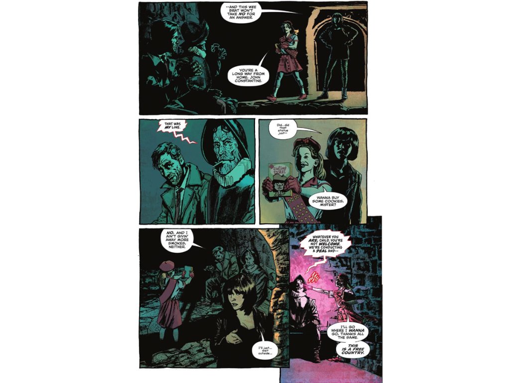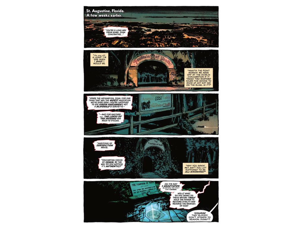 Far from home and with precious few allies to call upon, Constantine, his son Noah, and his “bodyguard” Nat are on the run in America and wanted for murder. To make matters worse, John’s heart has stopped beating and his body is quite literally decaying more and more with each passing day.