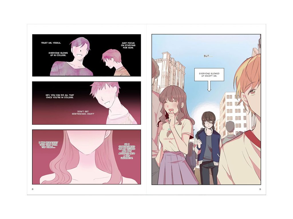 Kim Yeseul has always heard that everyone glows up in college… so why does she feel like the least pretty college student ever?! All of her peers look effortlessly put together 24/7, but Yeseul has no idea how to apply makeup or style her hair. With neither the looks nor the confidence to stand out, Yeseul resigns herself to hiding behind her camera as she completes her photography degree.