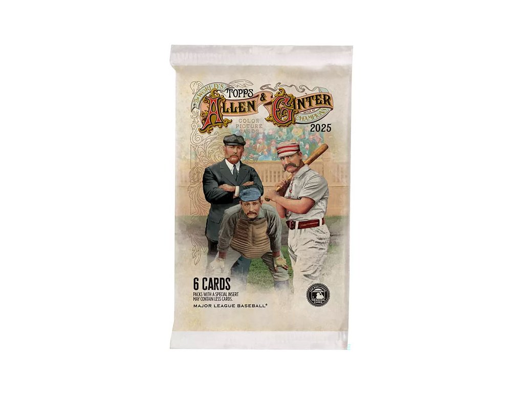 Balíček zberateľských baseballových kartičiek z edície Allen & Ginter. Obsahuje 6 kariet. Hľadaj inzerty, paralely, podpisy odkazy na popkultúru a ďalšie!