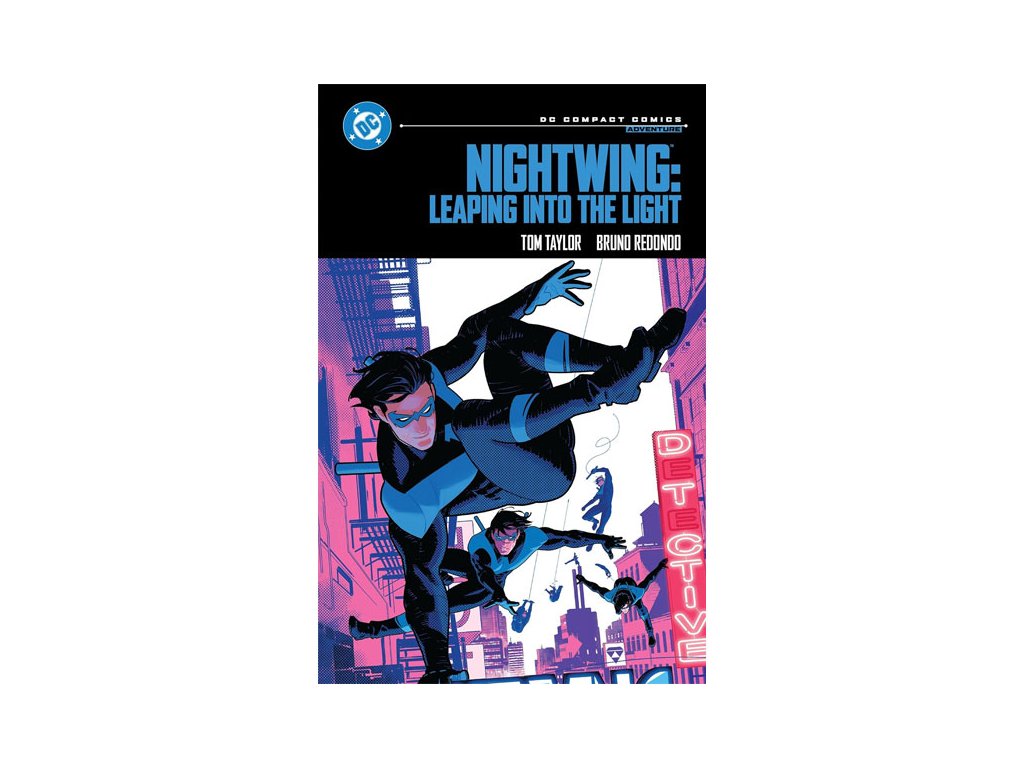 Nightwing: Leaping into the Light – DC Compact Comics Edition spája zväzky Nightwing Vol. 1: Leaping into the Light (čísla #78–83) a Nightwing Vol. 2: Get Grayson (čísla #84–88). Táto kritikmi uznávaná séria od scenáristu Toma Taylora a ilustrátora Bruna Redonda nanovo definuje rolu Dicka Graysona v DC univerze. Keď zdedí obrovské ímanie a nájde nový zmysel života, musí čeliť desivému novému zloduchovi menom Heartless a navigovať v spleti sprisahania, ktoré mu na chrbát nakreslilo terč. Vďaka živému rozprávaniu, úprimným momentom a úchvatnému vizuálu je toto vydanie ideálne pre nových čitateľov aj dlhoročných fanúšikov.