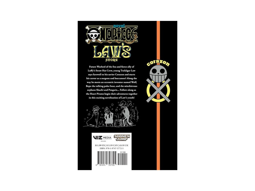 Budúci Warlord of the Sea (Vojvoda mora) a verný spojenec Luffyho posádky Straw Hat Crew, mladý Traffalgar Law, sa lúči so svojím záchrancom Corazonom a začína svoju kariéru chirurga a bukaniera! Cestou stretáva excentrického vynálezcu menom Wolf, hovoriaceho ľadového medveďa Bepa a nezbedné siroty Shachi a Penguina... Sledujte, ako Heart Pirates začínajú svoje spoločné dobrodružstvá v tomto vzrušujúcom románe o mladosti Traffalgar Lawa!
