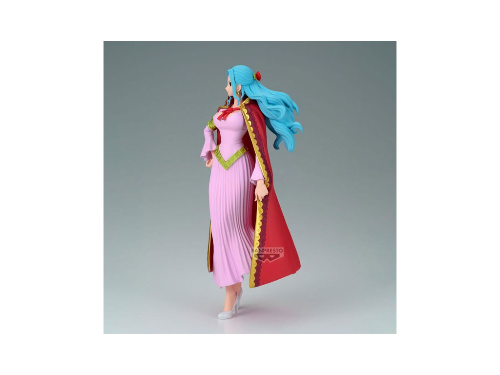 Táto špeciálna figúrka Nefeltari Vivi zo série Grandline Series s výškou cca 19 cm ju zachytáva v jej ikonickom, dobrodružnom oblečení. Vivi nie je len dedičkou Alabasty, je to bývalá členka Straw Hat Crew pirátov, ktorá ukázala srdce a silu bojovníčky.