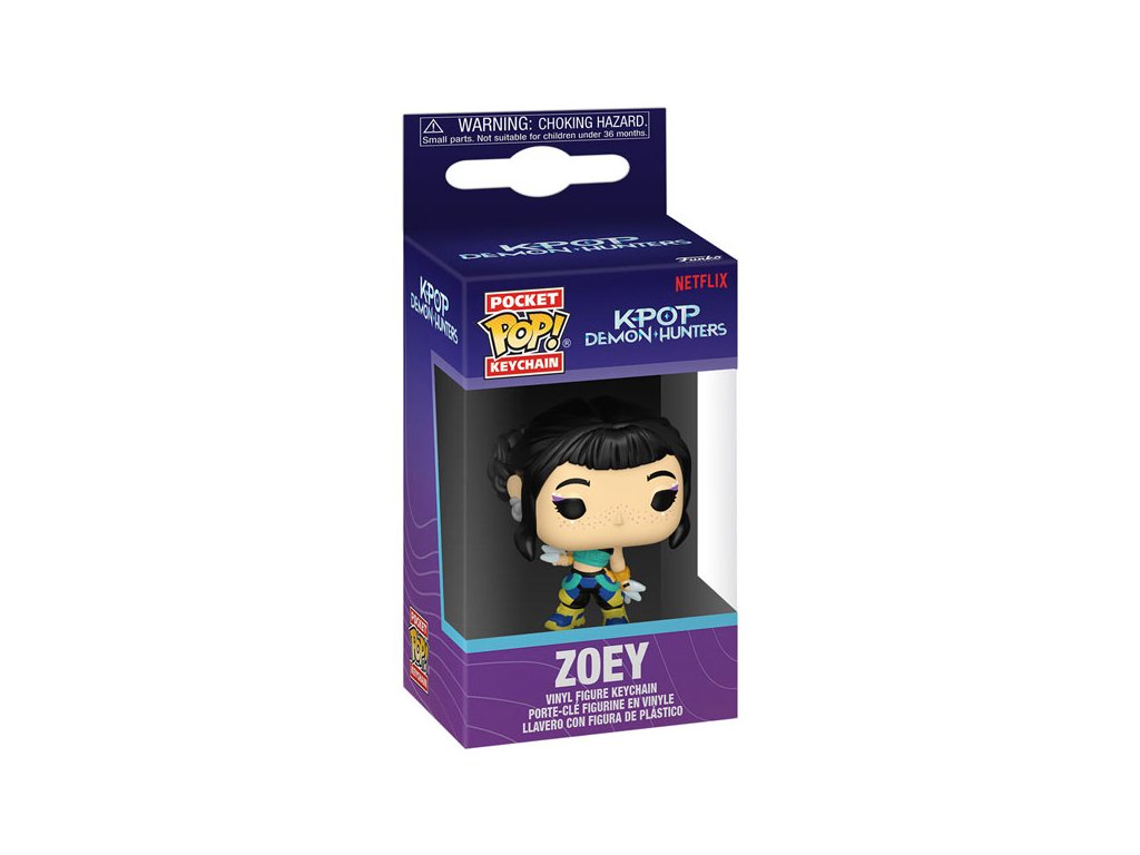 Zoey, najodvážnejšia a najdivokejšia členka zostavy K-Pop Demon Hunters, prichádza ako štýlová Pocket POP kľúčenka. Zoey je známa svojou nebojácnosťou a schopnosťou rozprúdiť dav aj na tom najnebezpečnejšom koncerte v podsvetí. Teraz môže tento náboj preniesť aj na tvoje kľúče!