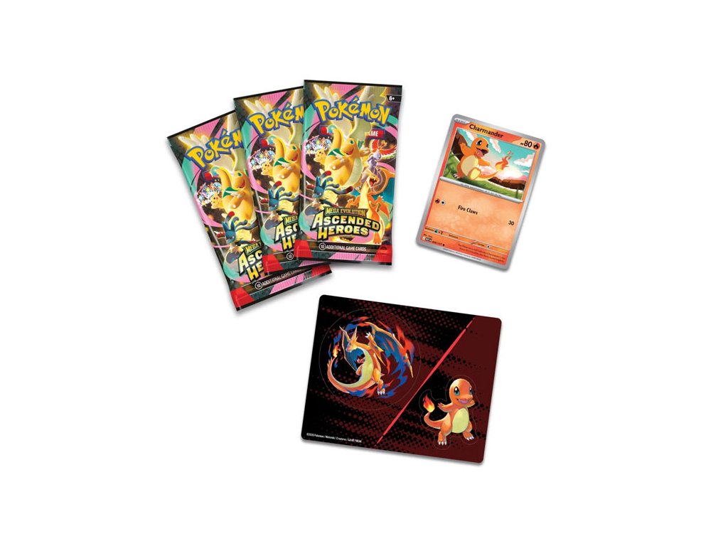 Sada zberateľských Pokémon TCG kariet z expanzie Ascended Heroes. Obsahuje 3x booster pack, promo kartu Charmander alebo Gastly a hárok samolepiek.