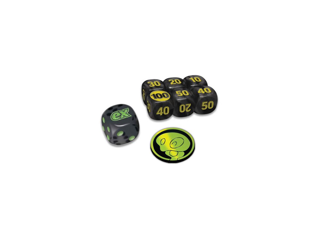 - Herná výbava: Sada kociek na značenie poškodenia, žetóny stavov a súťažná hádzacia minca.