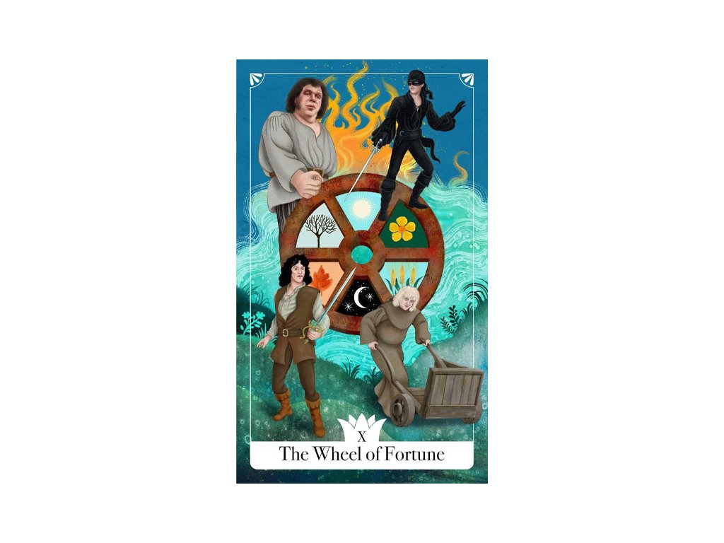 - NÁDHERNÉ ORIGINÁLNE UMENIE: Každá zo 78 tarotových kariet obsahuje doteraz nezverejnené, úchvatné ilustrácie Westleyho, Buttercup, Iniga Montoyu, Fezzika a mnohých ďalších postáv z tohto obľúbeného filmu.