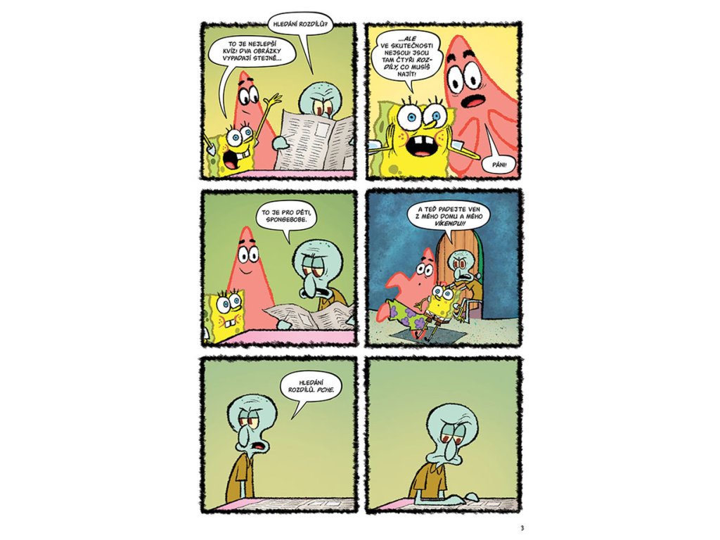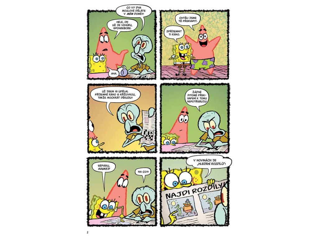 Tentokrát sami přiložíte ruku k dílu, abyste pomohli Sépiákovi hledat rozdíly, mladému detektivu SpongeBobovi vyřešit velkou dortovou loupež a Patrikovi sestavit rozházený komiks! Můžete kreslit a vyzkoušet si, jak pevné máte nervy, nebo rozhodovat, jak se vyvine dobrodružství noční sousedské hlídky!