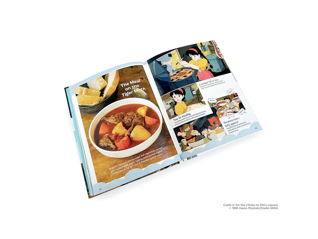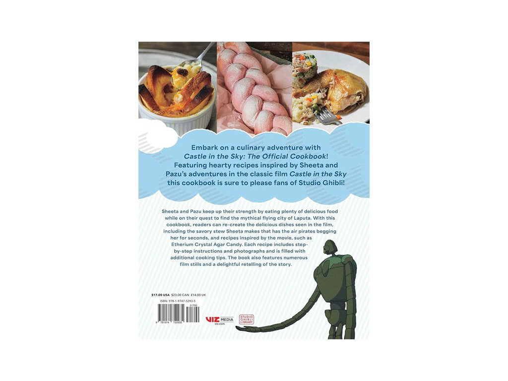 Sheeta a Pazu si udržiavajú silu jedením množstva chutného jedla, zatiaľ čo hľadajú mýtické lietajúce mesto Laputa. S touto kuchárskou knihou si čitatelia môžu znova pripraviť chutné jedlá videné vo filme, vrátane slaného gulášu, ktorý Sheeta pripravuje a vzdušní piráti prosia o dupľu, a taktiež recepty inšpirované filmom, ako napríklad Agarové cukríky z kryštálov Éteria. Každý recept obsahuje pokyny krok za krokom a fotografie a je plný ďalších tipov na varenie. Kniha obsahuje aj množstvo filmových záberov a nádherné prerozprávanie príbehu.