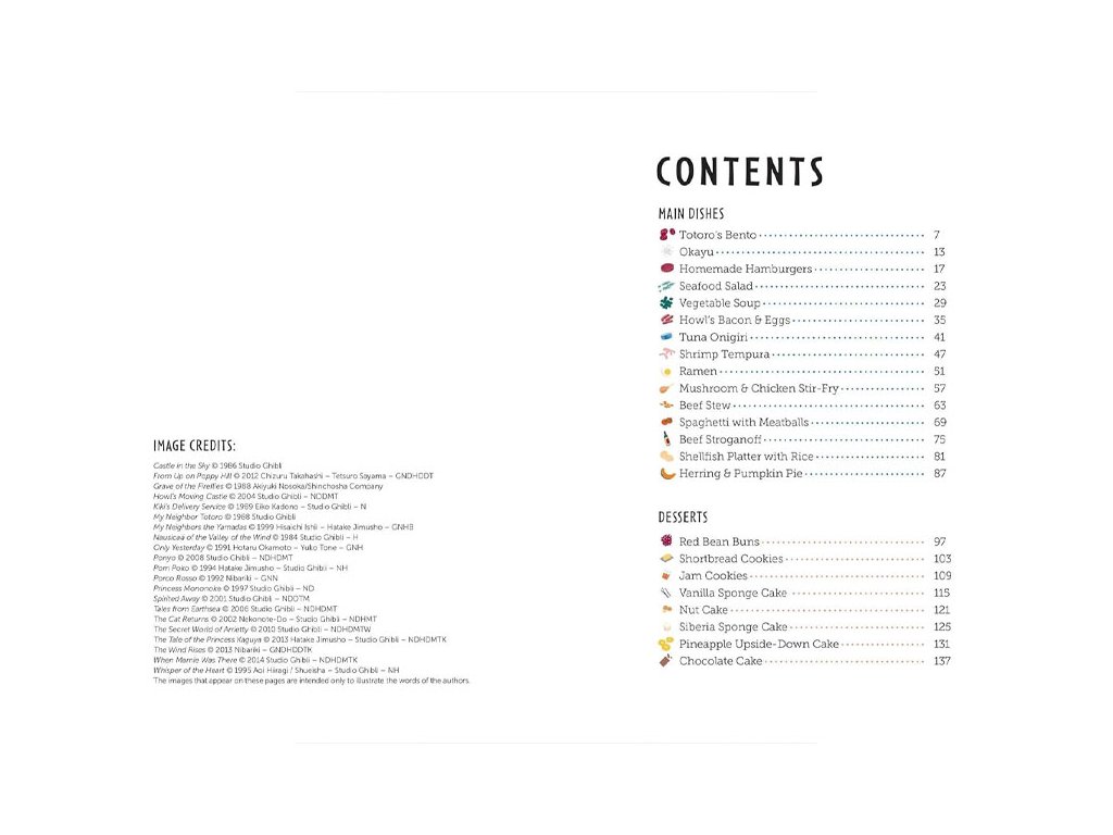 - VIAC NEŽ 20 RECEPTOV: Viac ako 20 receptov inšpirovaných štúdiom Ghibli, vrátane fazuľových buchiet z Cesty do fantázie, ramenu z filmu Ponyo z morského útesu a ďalších špecialít.