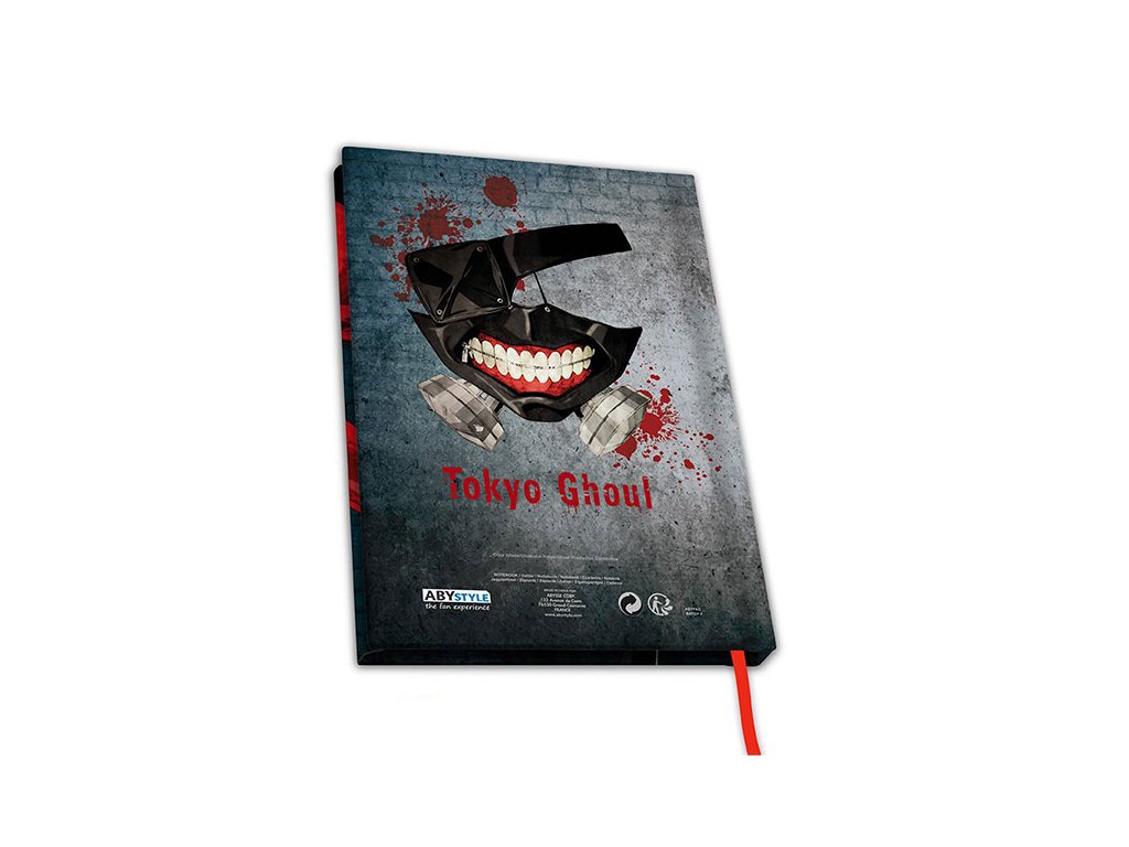 Ken Kaneki so svojou slávnou maskou vyobrazený na tomto štýlovom zápisníku Tokyo Ghoul.