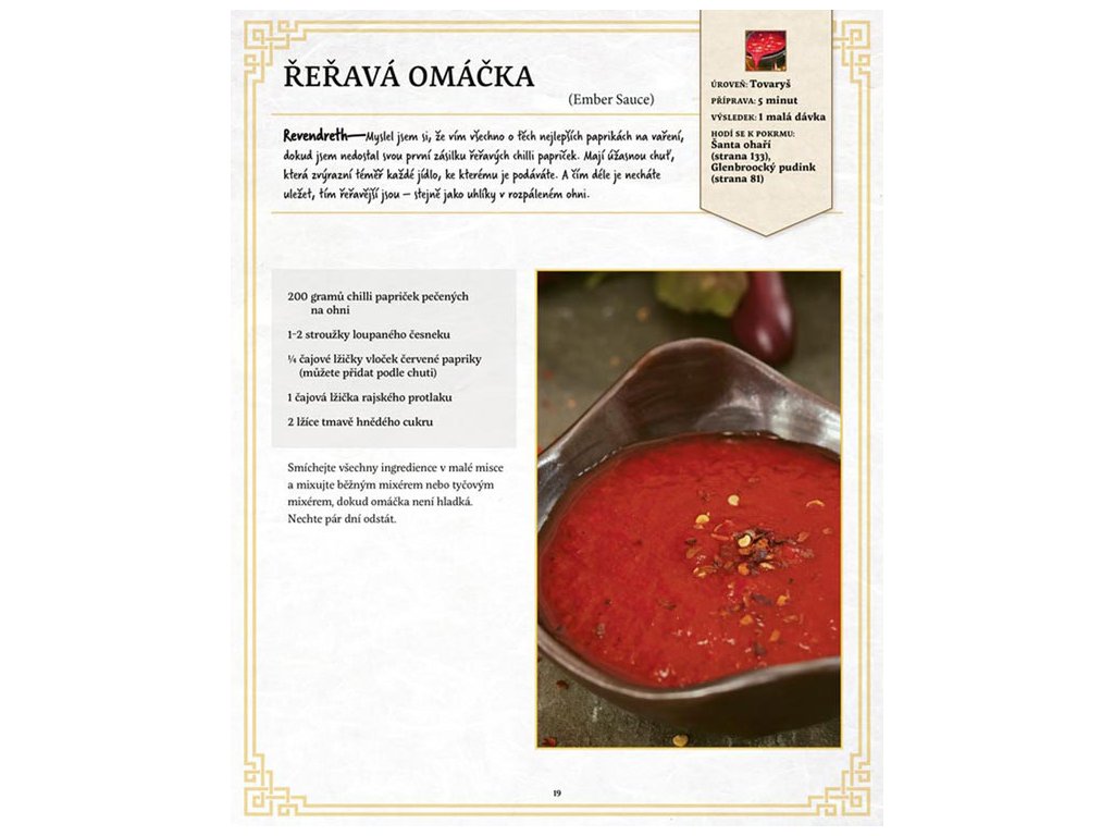 Každá kapitola knihy vás krok po kroku provede jednoduchými recepty a fotografiemi dobrot ze všech koutů Azerothu, mez i které patří třeba: Kvásek ze Stormsongu, Jablka plněná masem, Brivelthwerpovy křupavé zmrzlinové tyčinky a Kul Tiramisu.